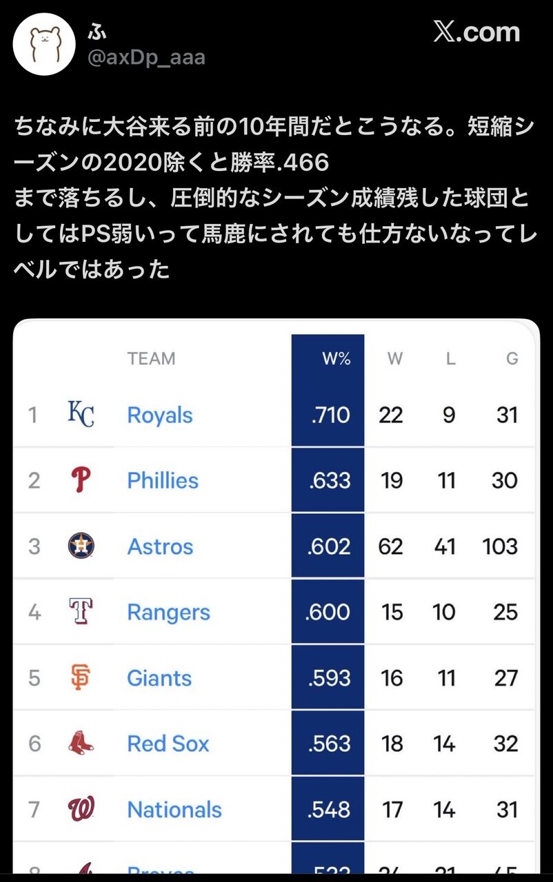 カーショウとか言うPS戦犯